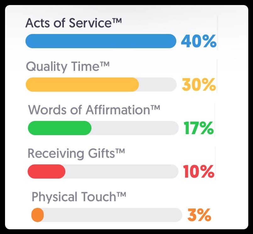 My top love languages are "Acts of Service" and "Quality Time." For me, the most meaningful gifts involve having tasks taken off my plate or spending quality moments together. For someone with this personality profile, you would want to consider shifting the focus from material gifts to unforgettable experiences.